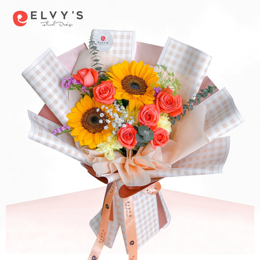 Flower DetailsMain: Sunflowers, local roses, and carnationsFiller: Eucalyptus, statice and Queen Anne'sSize: Approx.48.26cm This bouquet...