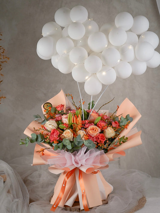 Product Details: Experience the enchantment of a stunning bouquet featuring peach and blush. Flower Inclusions:...