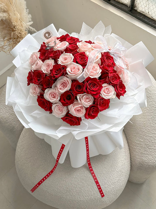 Product Details: Two dozen Ecuadorian roses accompanied by delicate gypsophila fillers, beautifully arranged in shades...