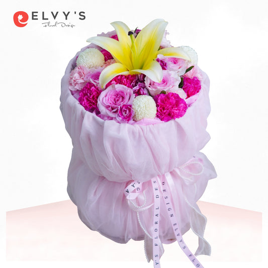 Flower DetailsMain: Sunflowers, holland roses, carnationsFiller: Craspedia, anthurium, pampasSize: Approx.50.8cm Experience the vibrant beauty of...