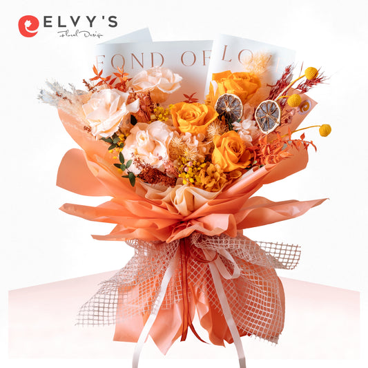 Product Details: Main Flowers: Preserved roses, baby's breath, and hydrangeas Fillers: Dried orange slices, craspedia,...