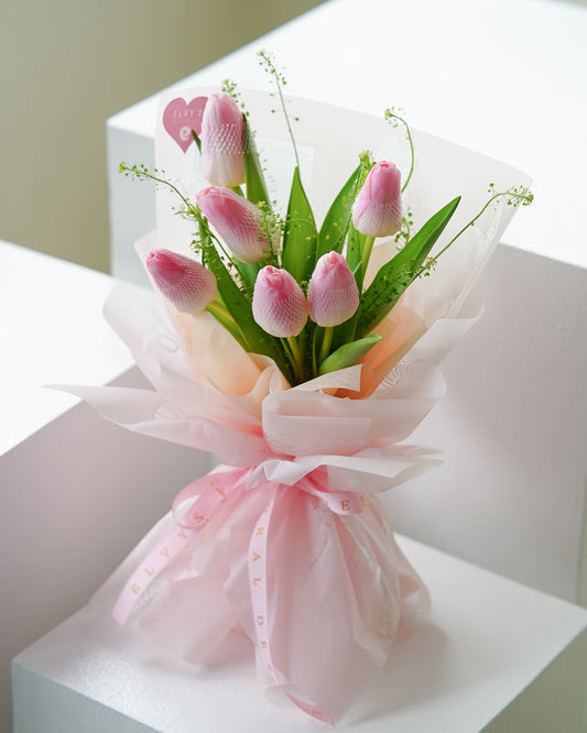 Product Details: Sassy Pink Main Flowers: Half a Dozen Pink Holland Tulips Fillers: Green Dragon...
