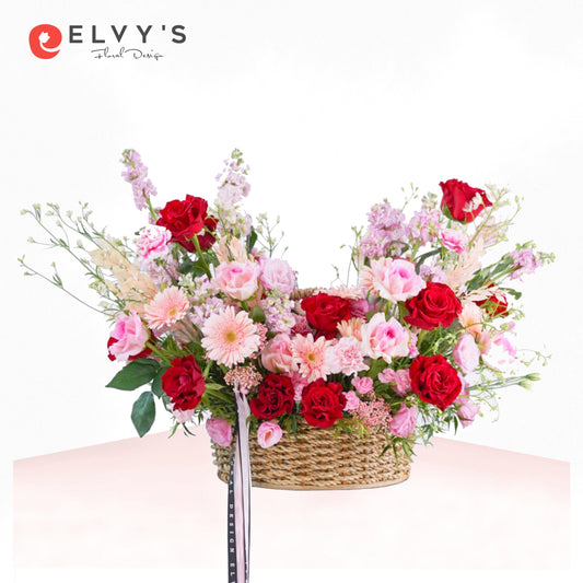 Flower details:Main: Carnations, gerbera, lisianthus, and spray roseFiller: Green dragon, ping pong, and chamomileIncluded: BasketSize:...