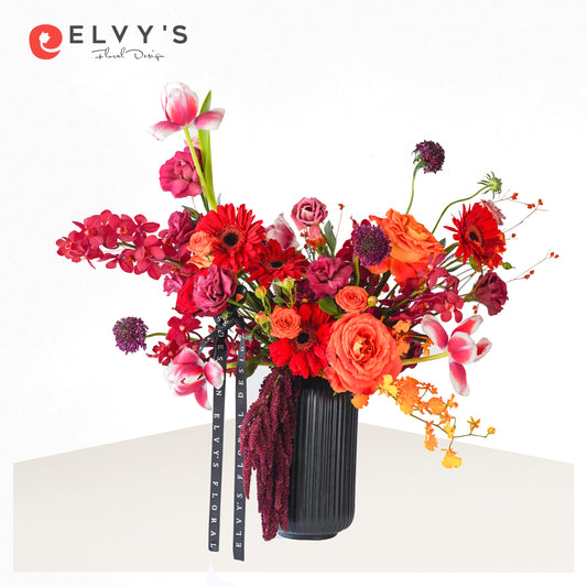 Flower detailsMain: Holland roses, gerbera, tulips, orchids, lisianthusFiller: Scabiosa, dancing lady, amaranthus, and Valentine fruitSize:...