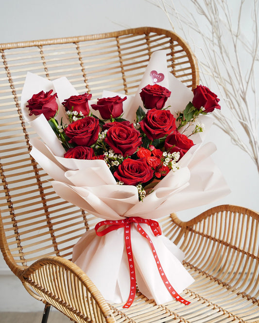 Product Details: Main Flowers: Ecuadorian Roses (12 Stems) Fillers: Wax Flowers Size: Approx. 43.18 cm...