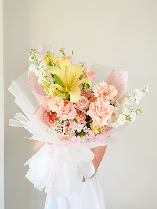 Flower detailsMain: Holland roses, lilies, mattiola, and carnationsFiller: Baby's breath and lisianthusSize: Approx.60.96cm Our signature...