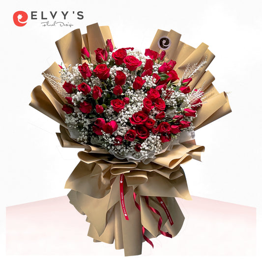 Flower details:Main: 5 dozen Philippine rosesFiller: Baby's breath and dried whiskSize: Approx.50.8cm Semi-round arrangement of...