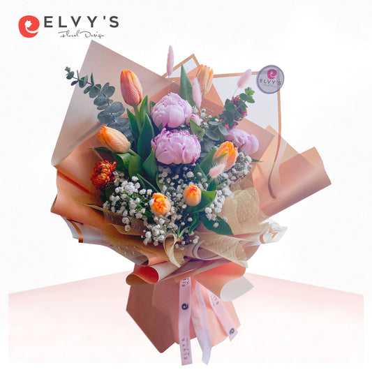 Product Details: This stunning bouquet combines the vibrant allure of Holland tulips with the soft...