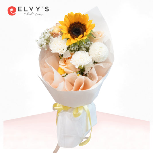 Flower DetailsMain: Sunflower, carnation, and Ping-Pong FlowersFiller: Baby's breath, chamomile, and roseSize: Approx.40.64cm Mini bouquet...