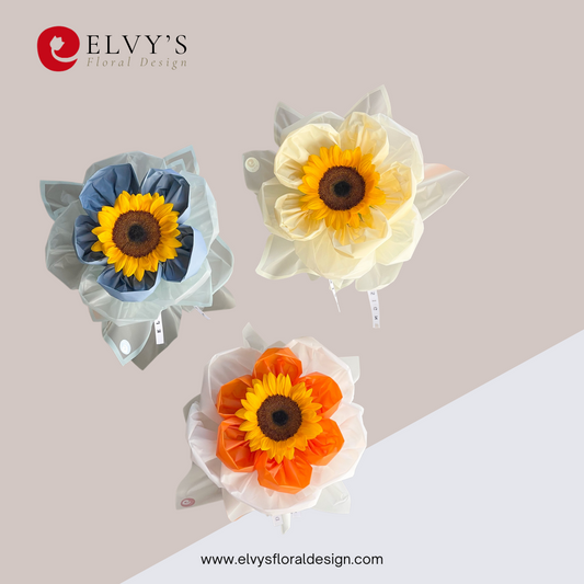 Flower DetailsMain: SunflowerSize: Approx.35.56cm An elegant origami-style arrangement, wrapped in a petal-like design. Perfect for...