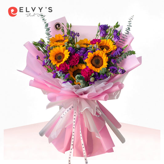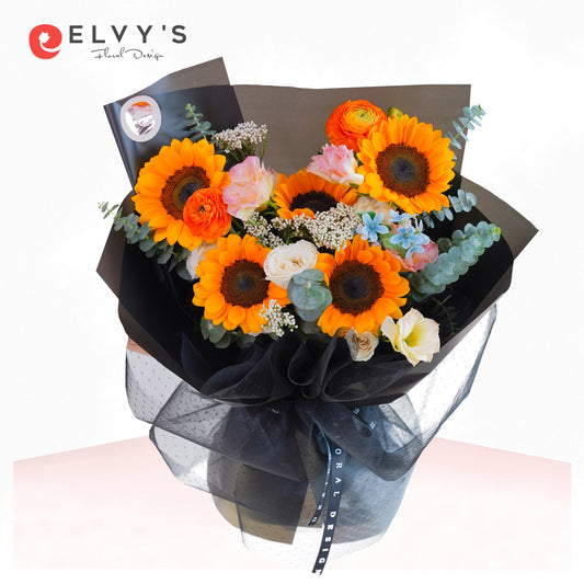 Flower DetailsMain: Sunflowers, holland roses, carnationsFiller: Craspedia, anthurium, pampasSize: Approx.50.8cm Experience the vibrant beauty of...