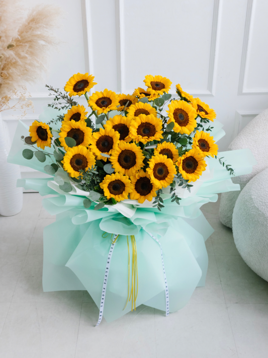 Product Details:Main Flowers: 24 Sunflowers Fillers: Eucalyptus Size: Approx. 66.04 cm Description: Sunbeam is a...