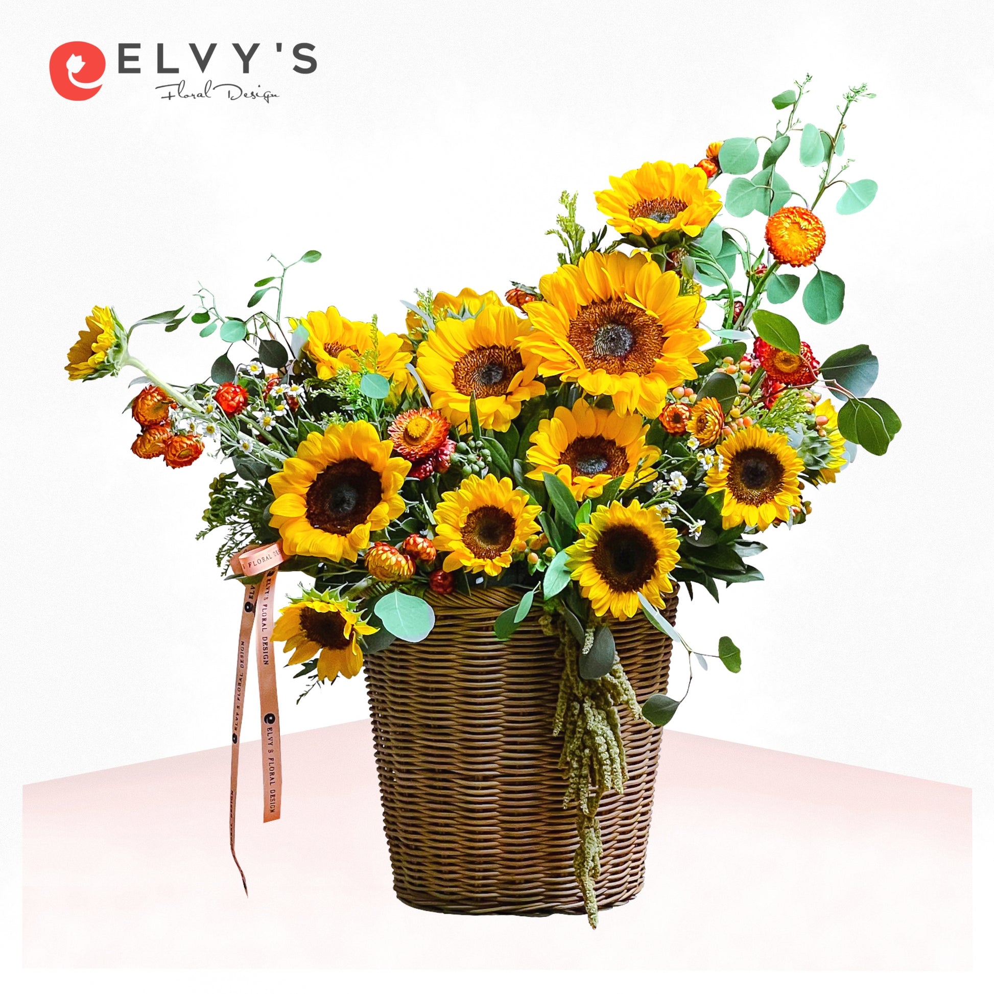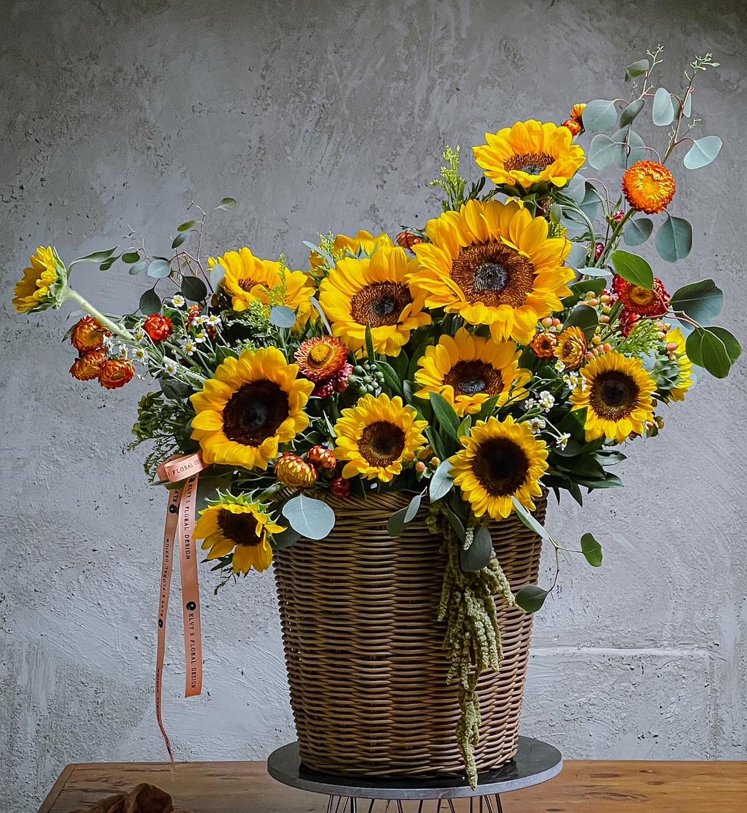 We created this basket arrangement to present the beauty of sunflower and feel the summer vibe in a delicate and exquisite style.