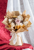 Delight in the timeless charm of our Café Au Lait Mini Bouquet, an exquisite blend of preserved and dried flowers. Featuring creamy tones and enchanting ruffled petals, each bloom is meticulously preserved to showcase its delicate beauty.