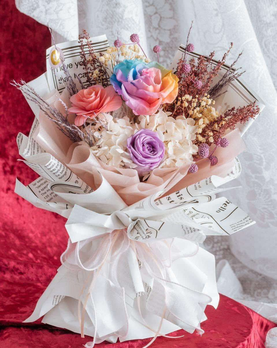 - Keep away from direct sunlight and humidity to preserve the bouquet’s charm.