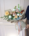 Fillers: Queen Anne’s Lace, White Stock, Peach Carnation, Brown Anthurium, Berry Sprigs, Parvifolia