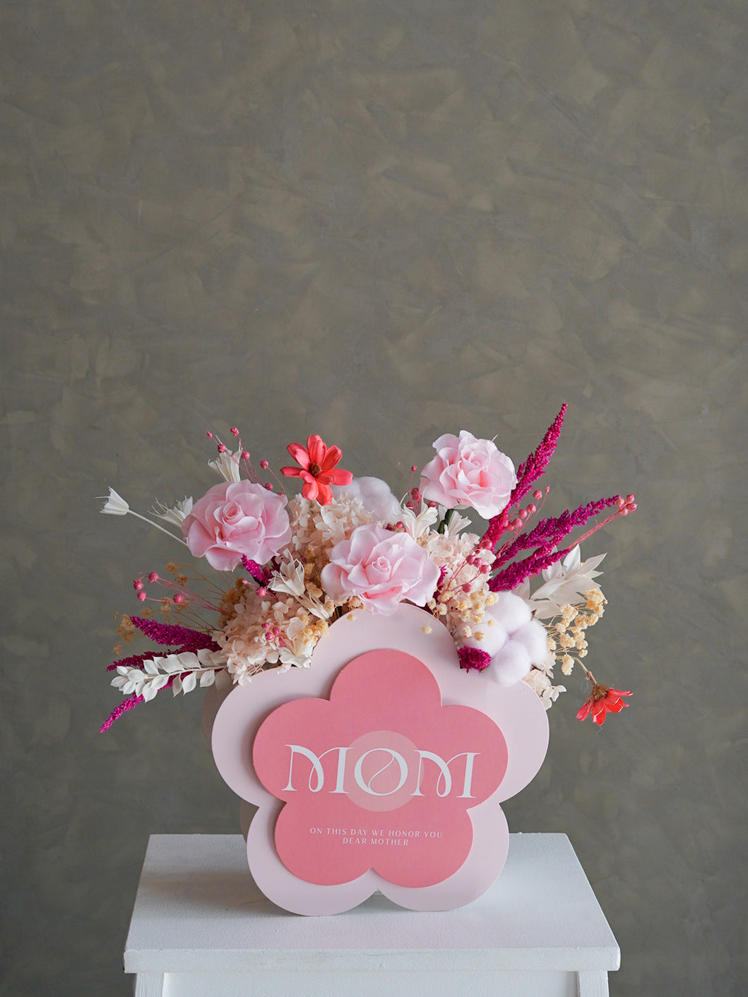Introducing our flower-shaped boxes filled a unique combination of dried flowers to create a fun and modern design.
