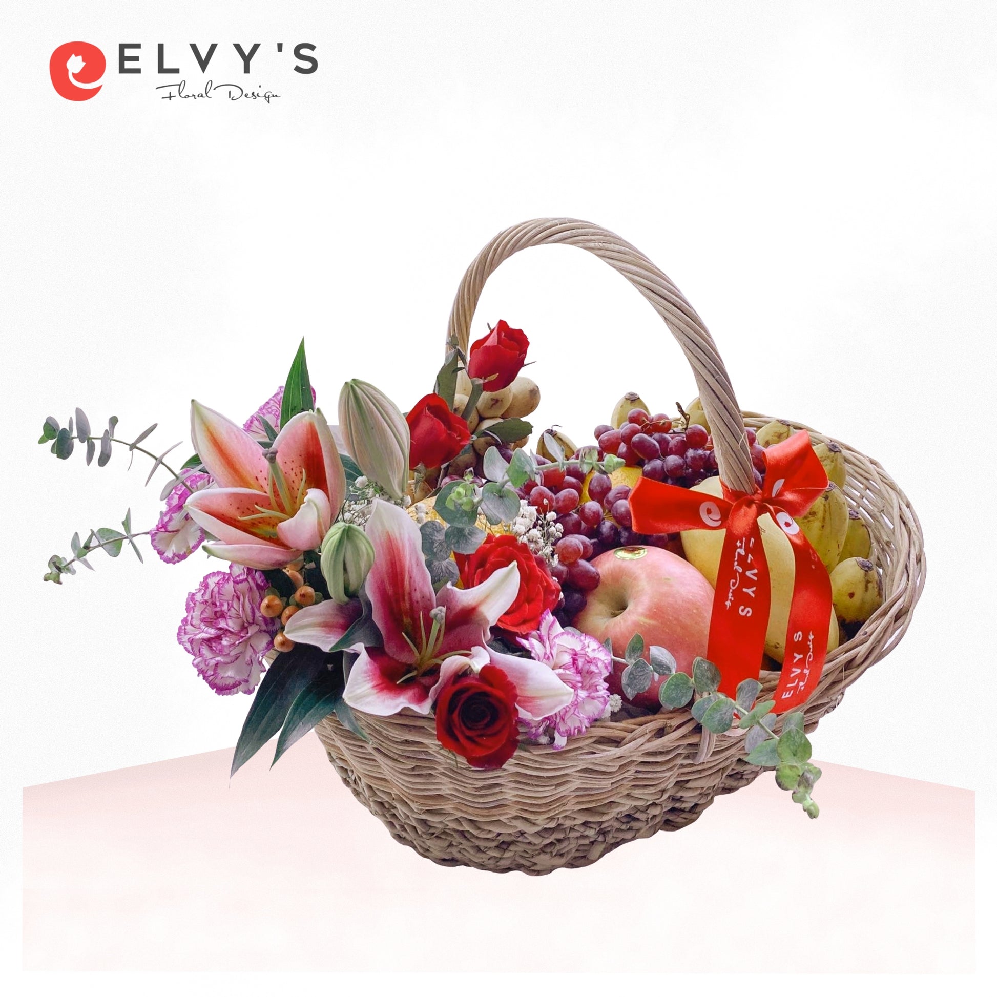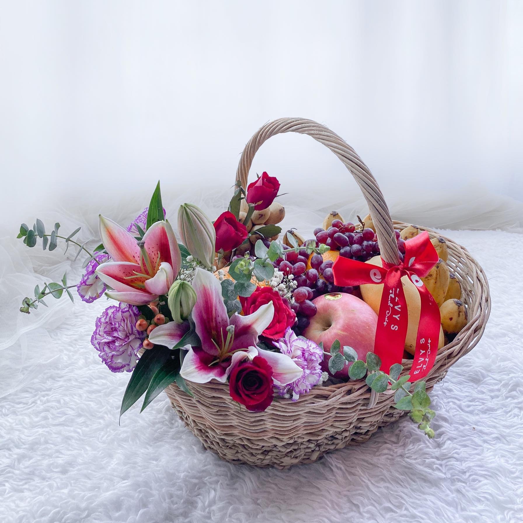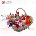 Fruit and Treats combines the beauty of fresh blooms and the richness of seasonal fruits to create a gift that conveys love, abundance, and care. The vibrant stargazer lilies and red roses symbolize admiration and affection, while the selection of fresh fruits adds a touch of nourishment and thoughtfulness. Perfect for celebrations, expressions of gratitude, or as a heartfelt gift to brighten someone's day.
