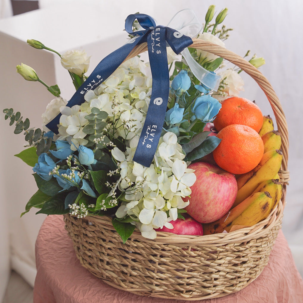 Each flower and fruit is meticulously chosen to create a harmonious blend of colors, textures, and fragrances. Whether it's a housewarming, a business opening, or a wish for someone's well-being, our Good Fortune Fruit and Flower Basket Arrangement is a perfect choice.