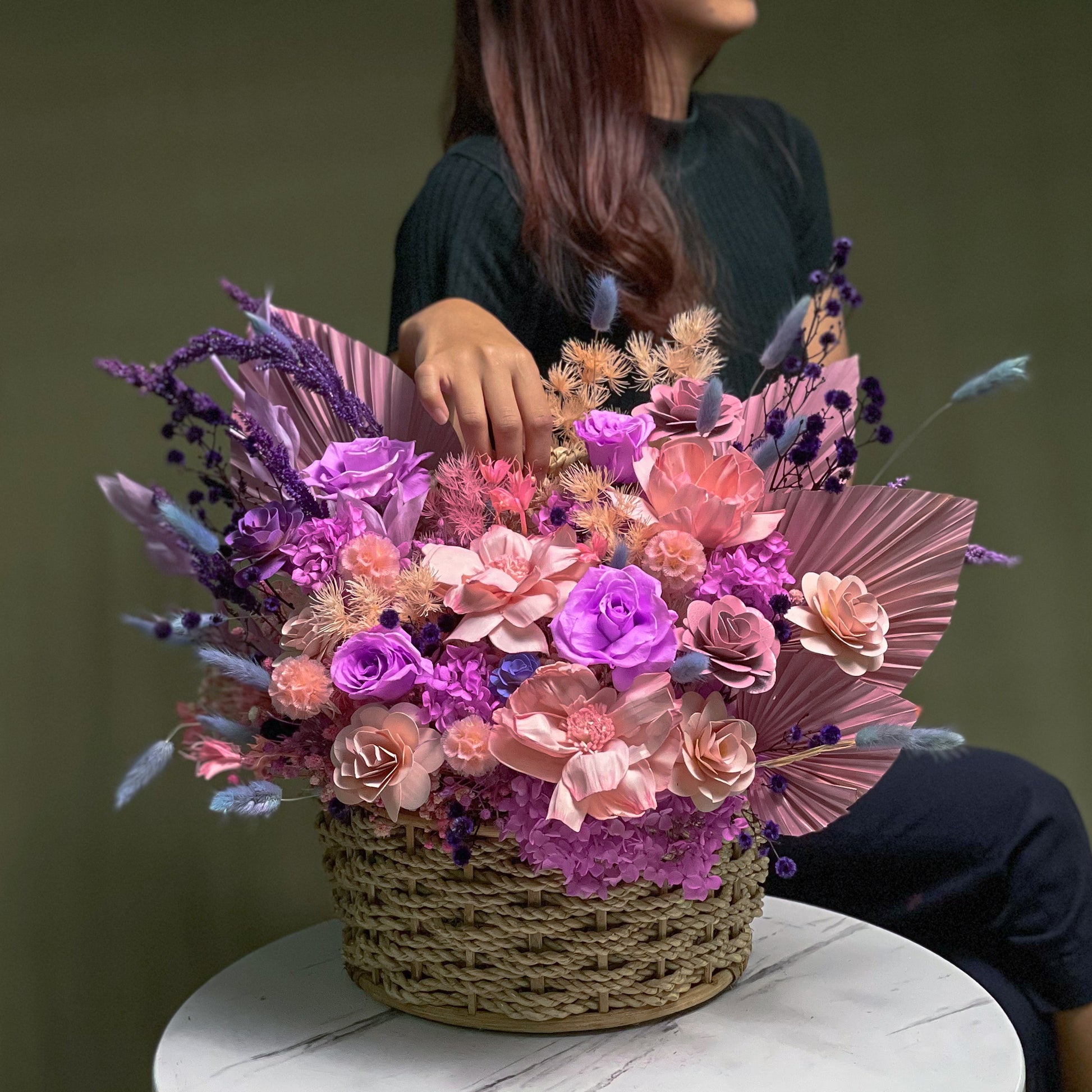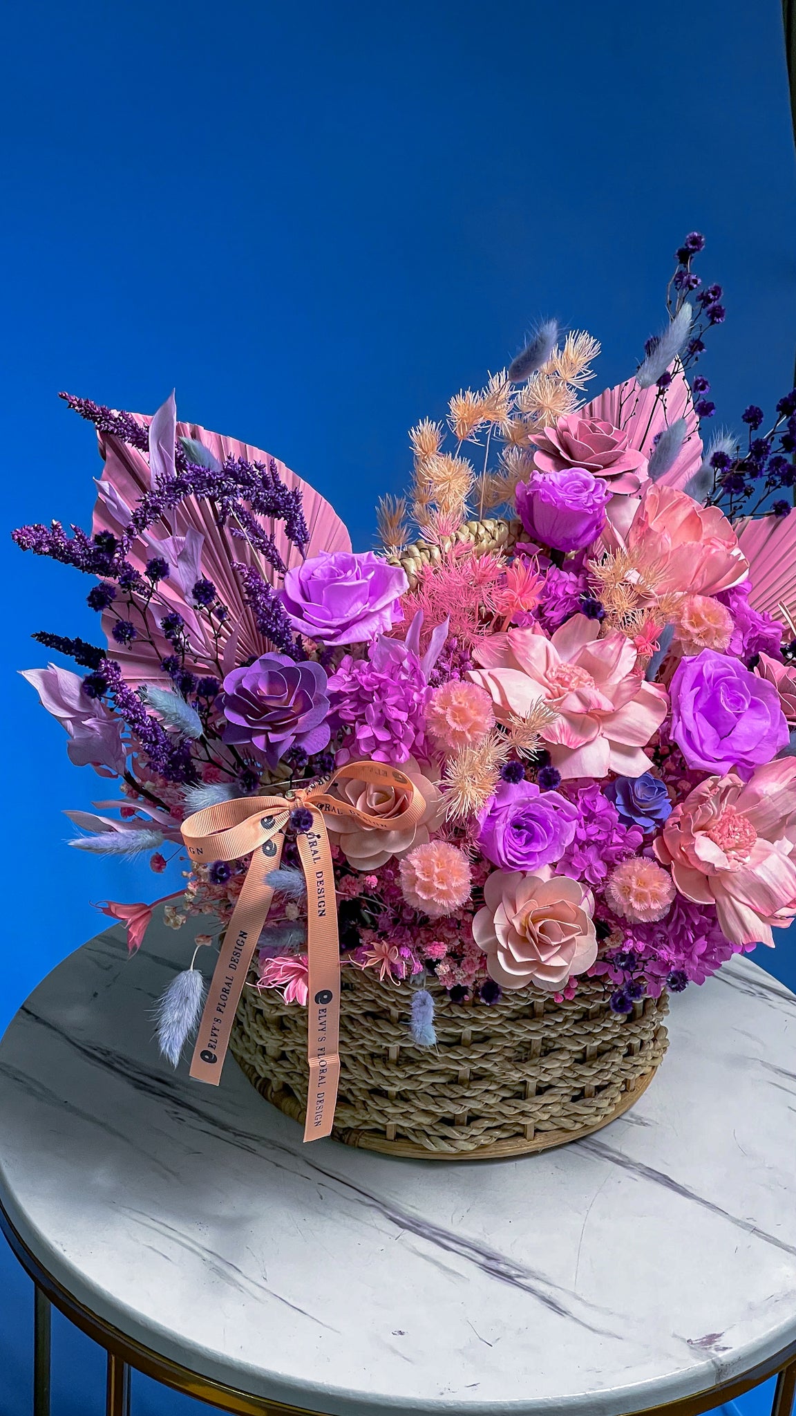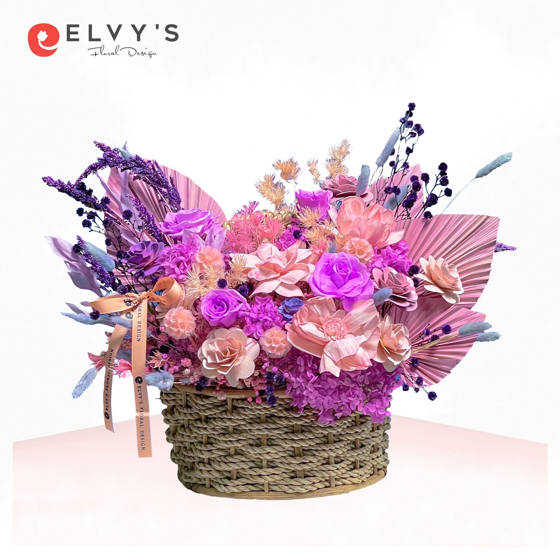 Flower Inclusions: Preserve roses, wooden flower, anahaw, lagurus, hydrangeas, scabiosa, gypsophila, and other dried flower fillers.