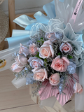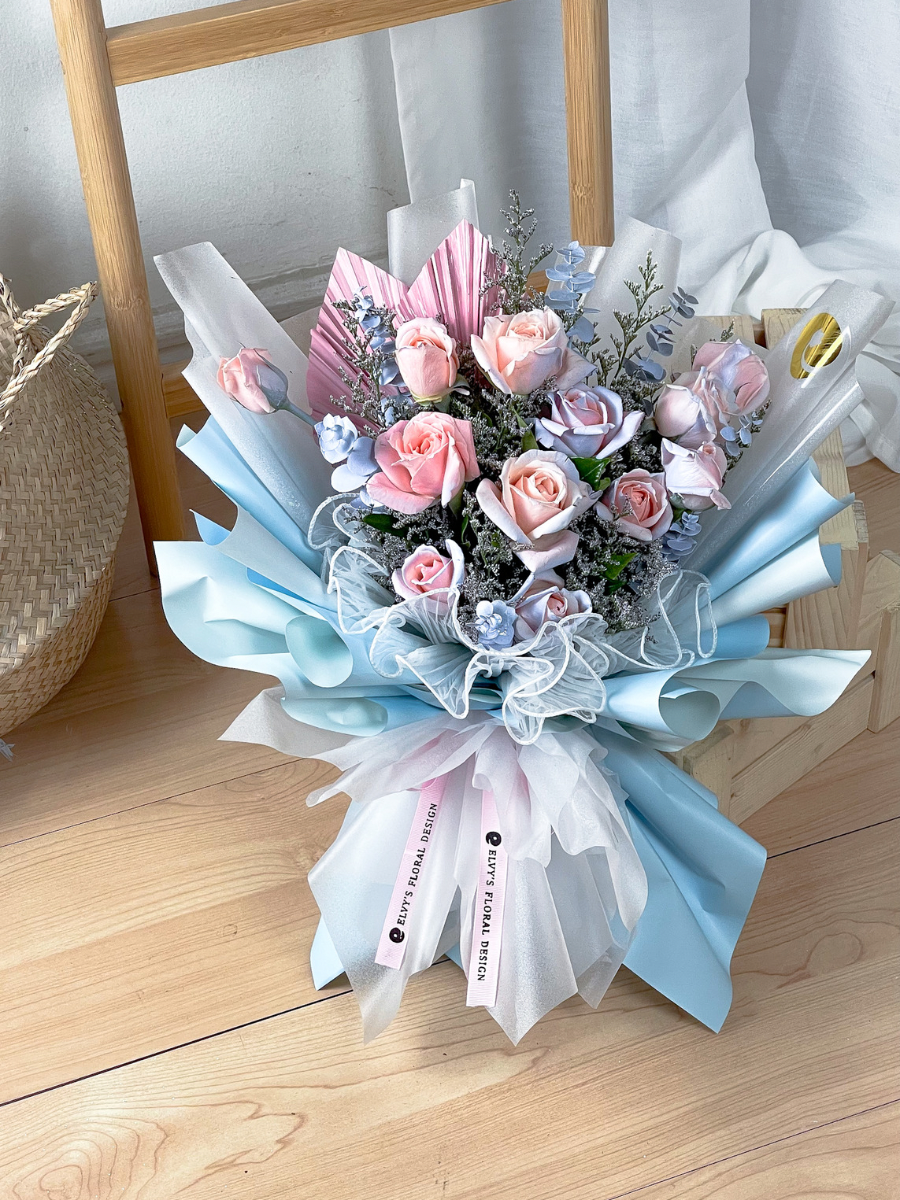 This bouquet is a perfect choice for those seeking a blend of uniqueness and elegance. Whether it's a special occasion or a heartfelt gift, the combination of dyed blue and pink.