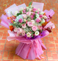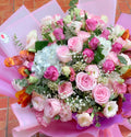 The diverse combination of blooms creates a dynamic and visually appealing bouquet that is sure to brighten up any space and bring a sense of joy and cheerfulness.