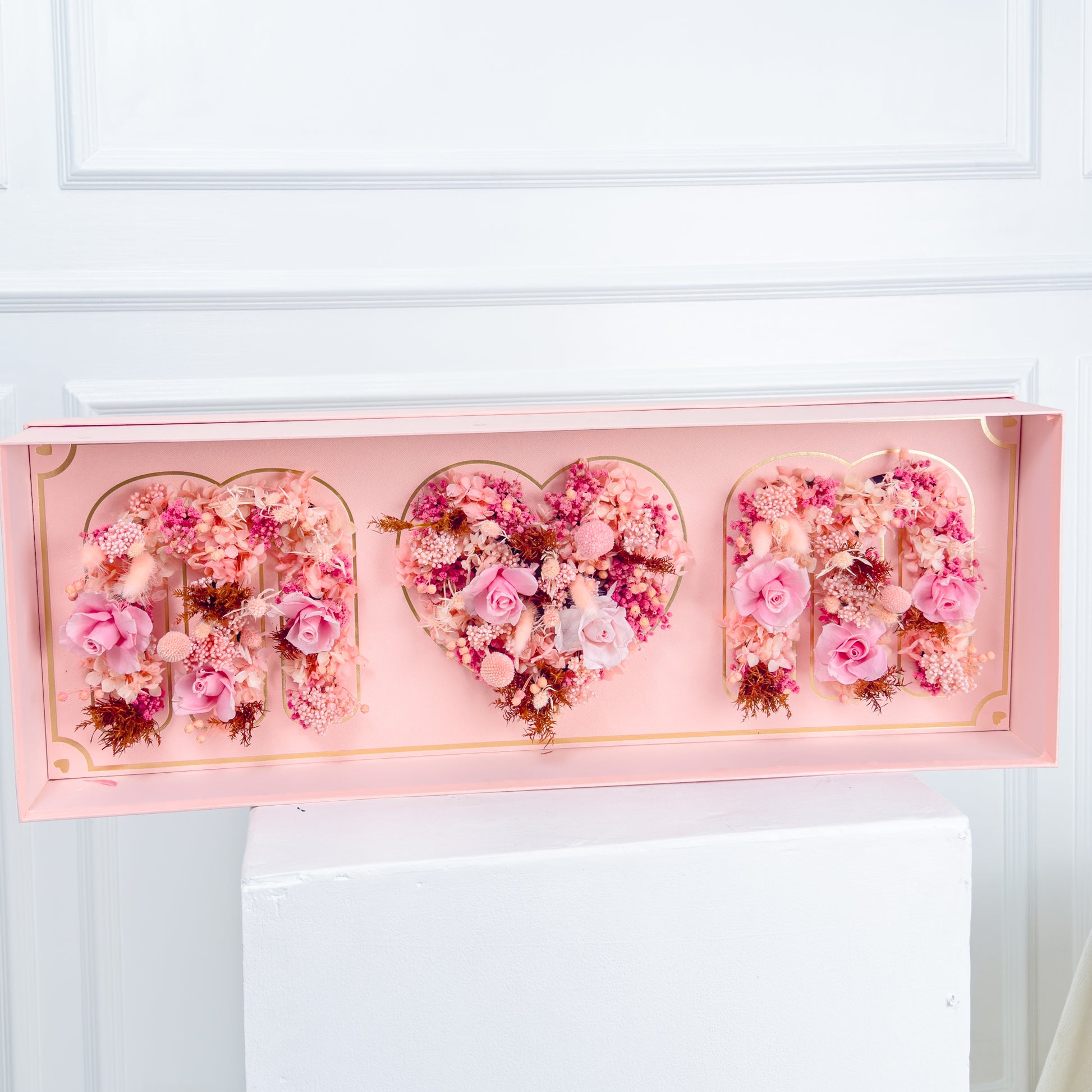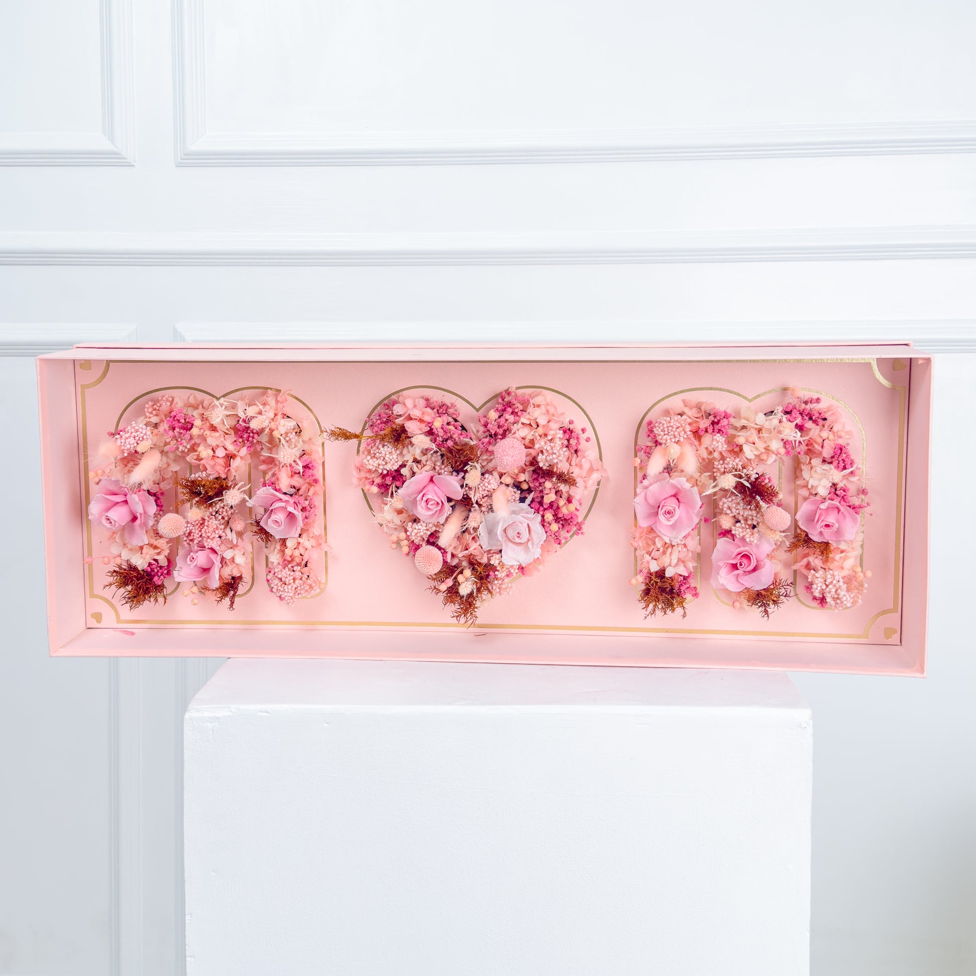 This beautiful box for Mom is filled with a stunning assortment of dried flowers, including preserved roses, baby's breath, craspedia, rice flower, eryngium, hydrangeas, and other fillers. Carefully preserved to maintain their natural charm, this thoughtful gift will bring joy for your mom.