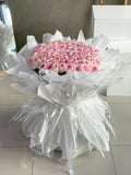 This grand bouquet of classic roses in soft tone perfectly blends with the white wrapper in round arrangement.