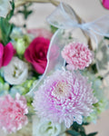 Main Flowers: Pink Holland Rose, Light Pink Chrysanthemum, White Lisianthus, Pink Carnation