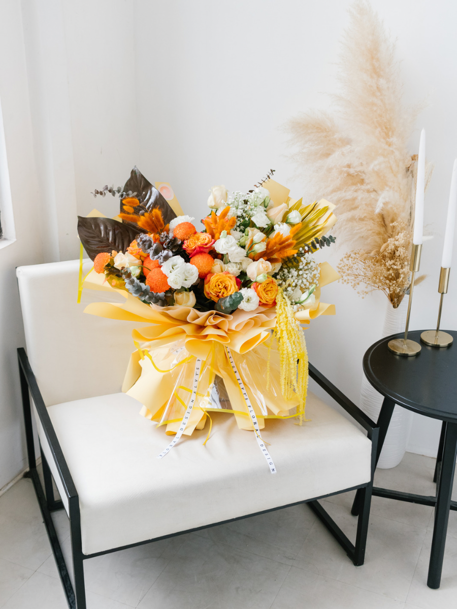 "Sun-Kissed" is a radiant embodiment of joy and beauty, perfect for expressing your heartfelt sentiments or as a stunning centrepiece for any occasion.
