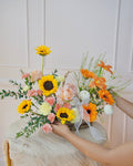 A bright and joyful ode to Mom’s warmth and optimism. Sunny Muse bursts with sunflowers, peach roses, orange gerberas, and soft fillers that bring sunshine to any room. Made to inspire smiles—just like she does every day.