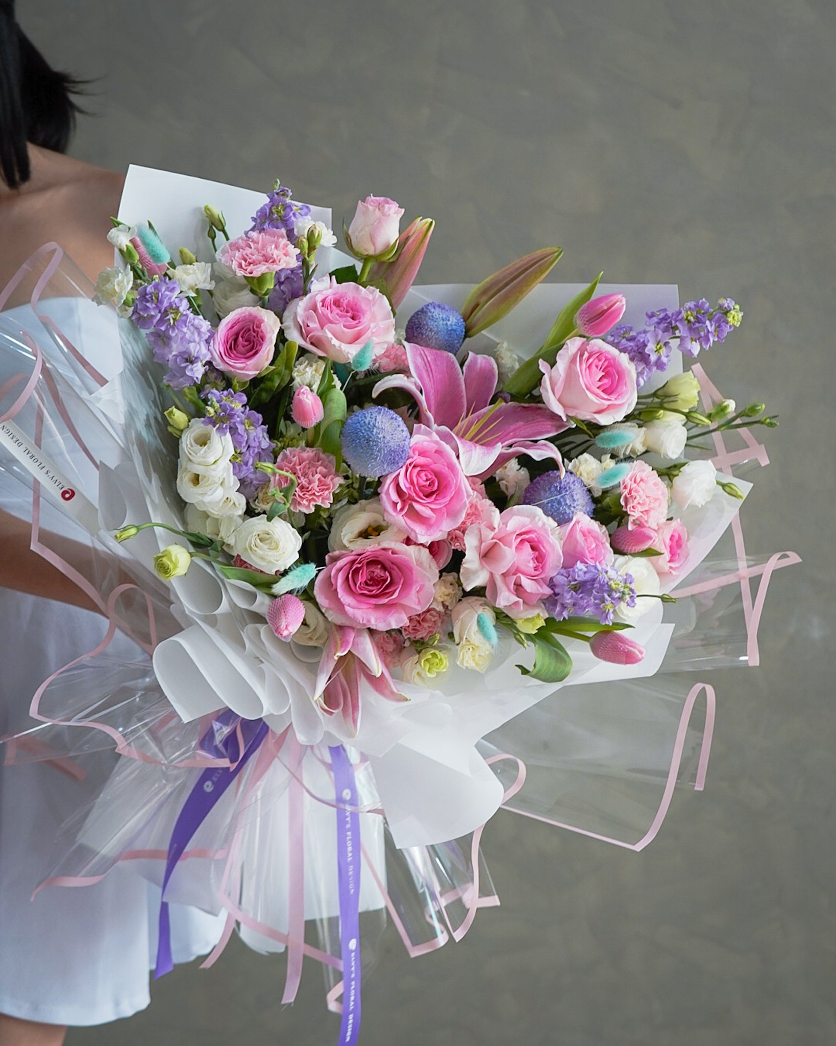 Main Flowers: Stargazer, Holland Tulips, Holland Roses, Lisianthus