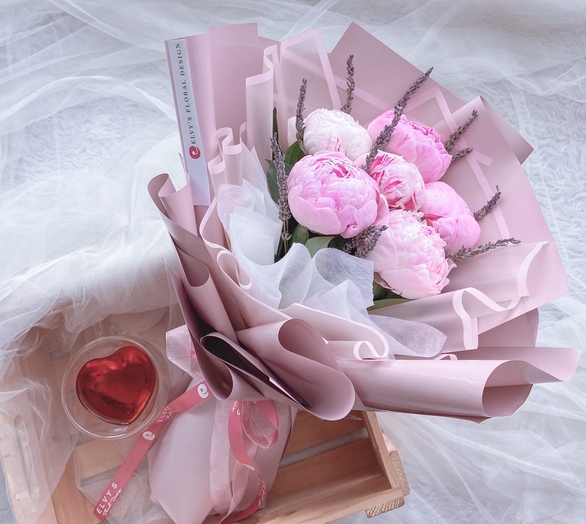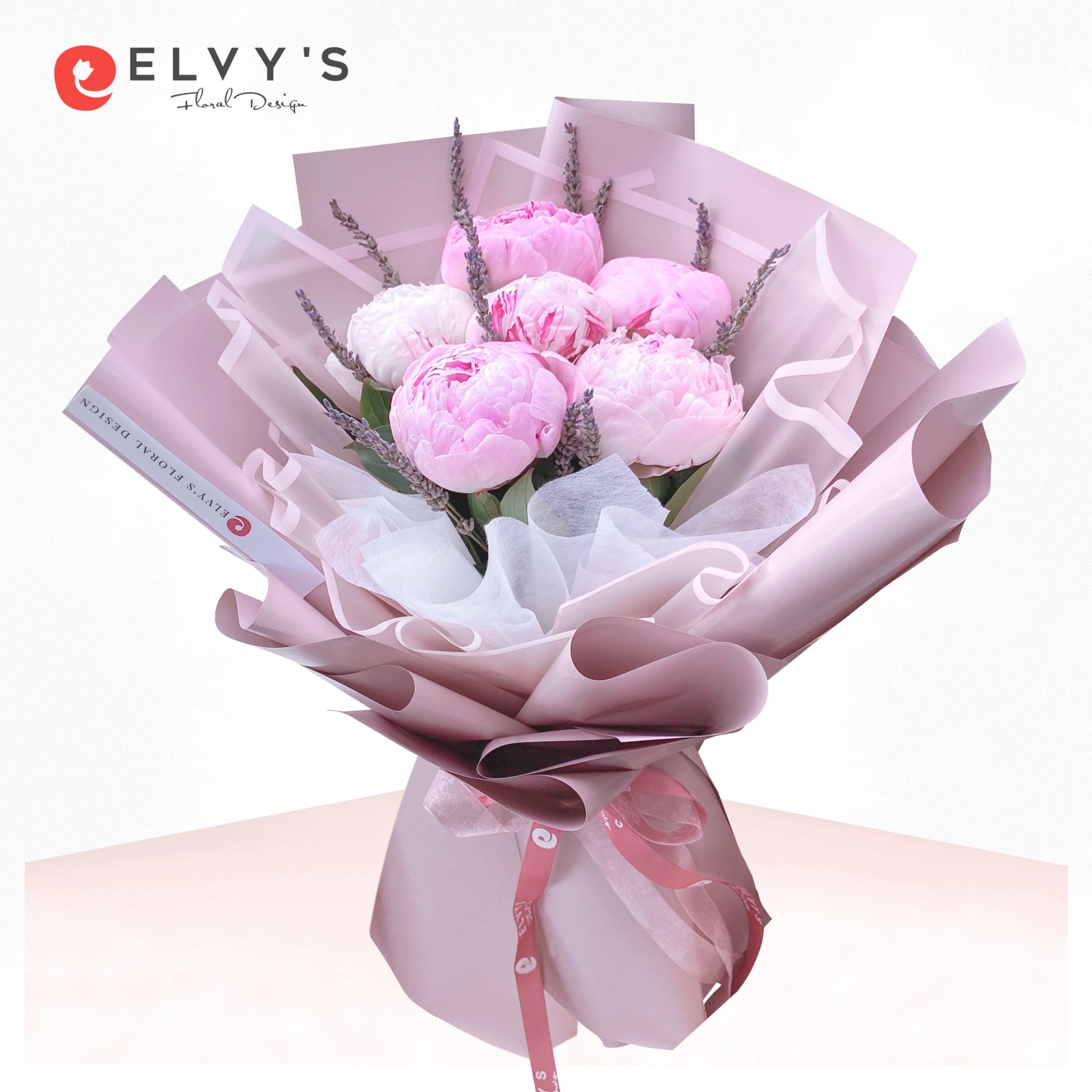 Flower Inclusions: 6 Stems blush peonies with scented Dried Lavender