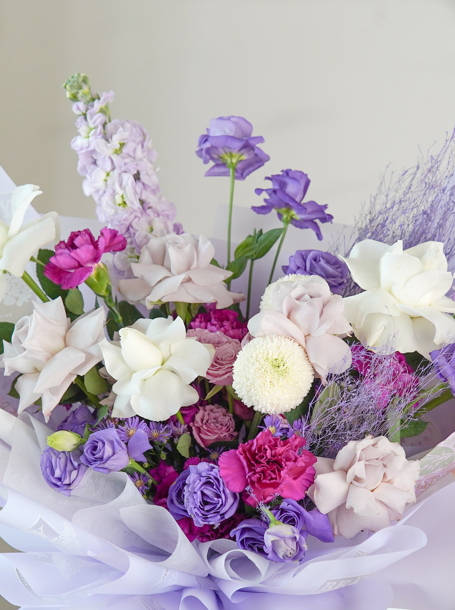 主打:荷兰玫瑰、洋桔梗、康乃馨、紫罗兰、喷雾玫瑰